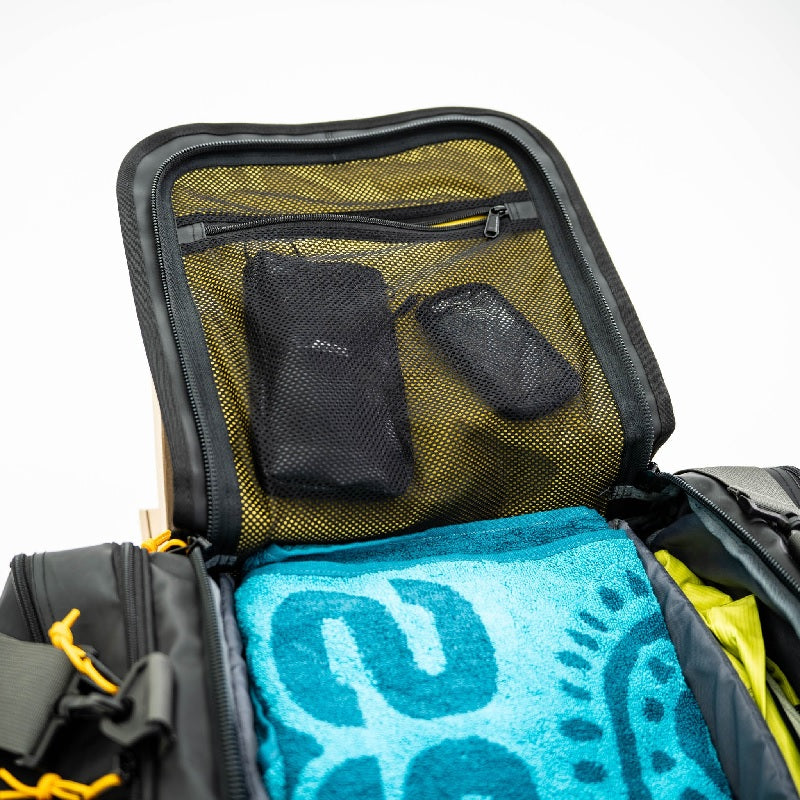 Inside, you’ll find two adjustable dividers and an internal mesh pocket to help you separate and organise your gear, along with a dedicated mesh bag for added convenience.