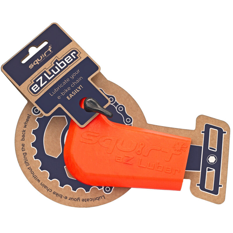 With the Squirt eZ Luber, you can lubricate your E-Bike chain effortlessly. Simply attach it over the crank arm, secure the rotating hook to the chainring assembly, and you can turn your cranks backwards while the rear wheel stays on the ground. It only takes a minute and is very easy. Watch the video below.